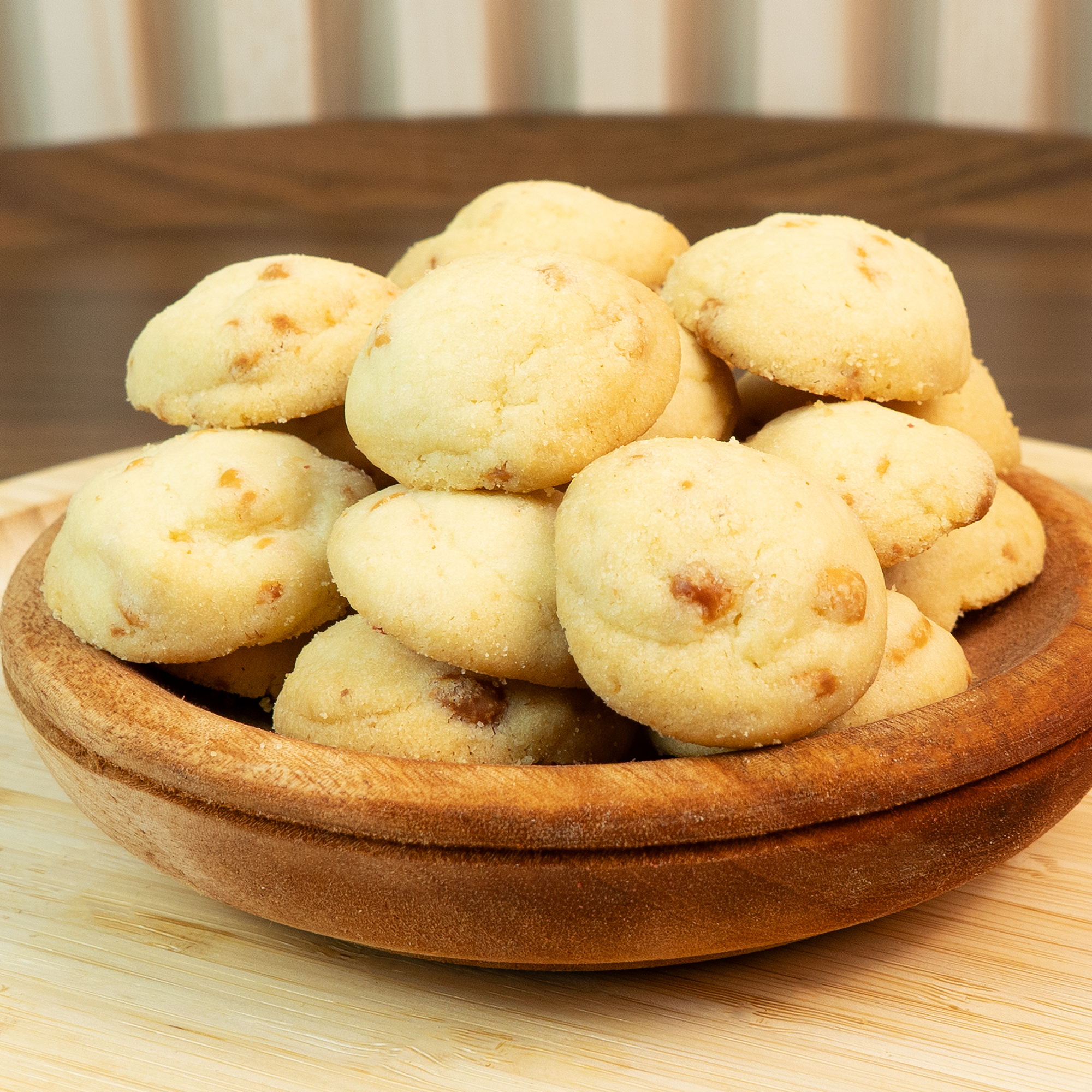 Sesuai dijadikan snek ringan, hidangan minum petang, atau pilihan kegemaran di majlis dan keraian, biskut ini menawarkan rasa keju yang memikat dan pasti membuatkan anda ingin menikmatinya lagi.