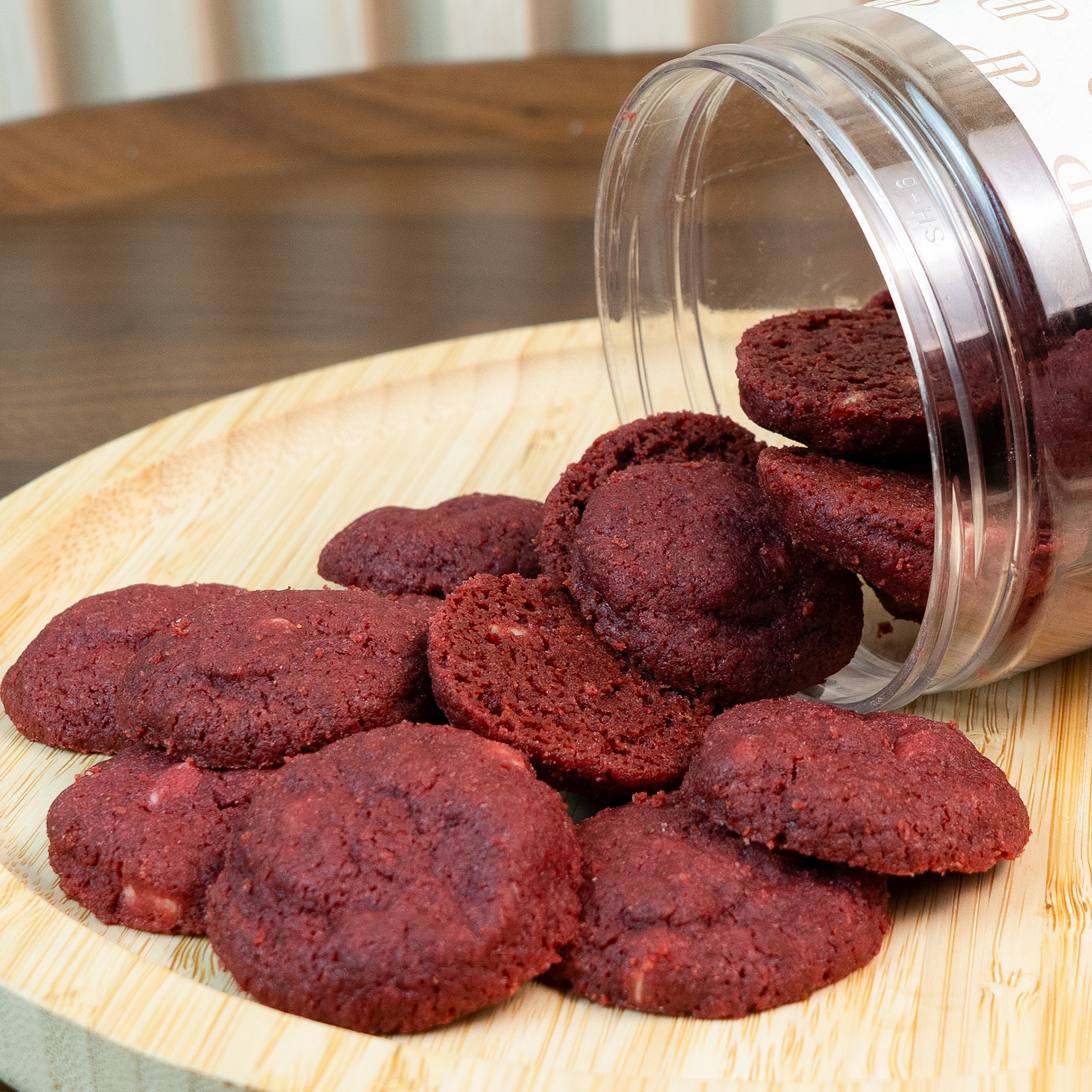 Nikmati rasa yang memikat daripada Red Velvet Cookies kami. Lembut dan gebu dengan sentuhan rasa yang halus, setiap biskut dibakar dengan sempurna untuk memberikan rasa yang kaya serta tekstur lembut yang cair di mulut.